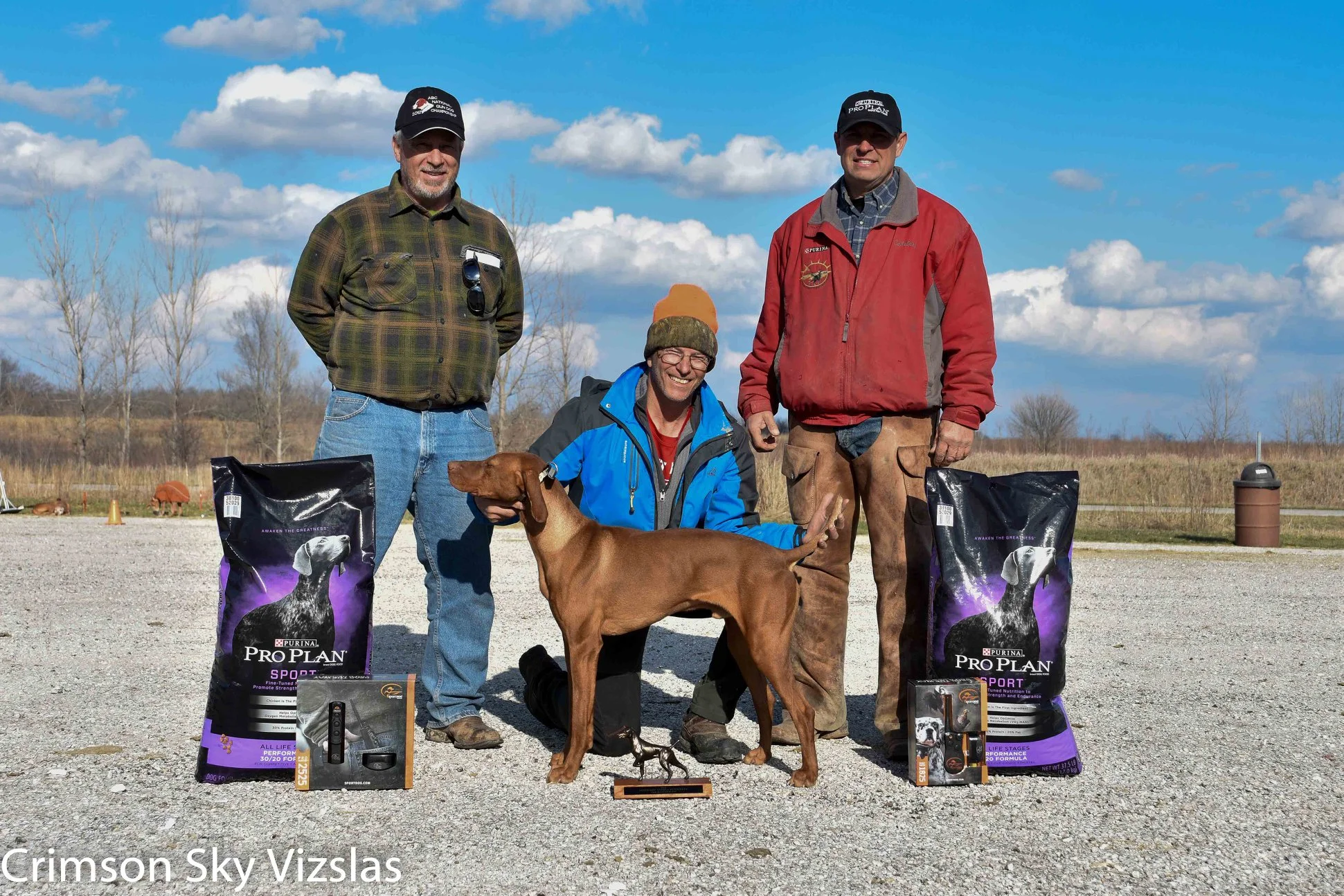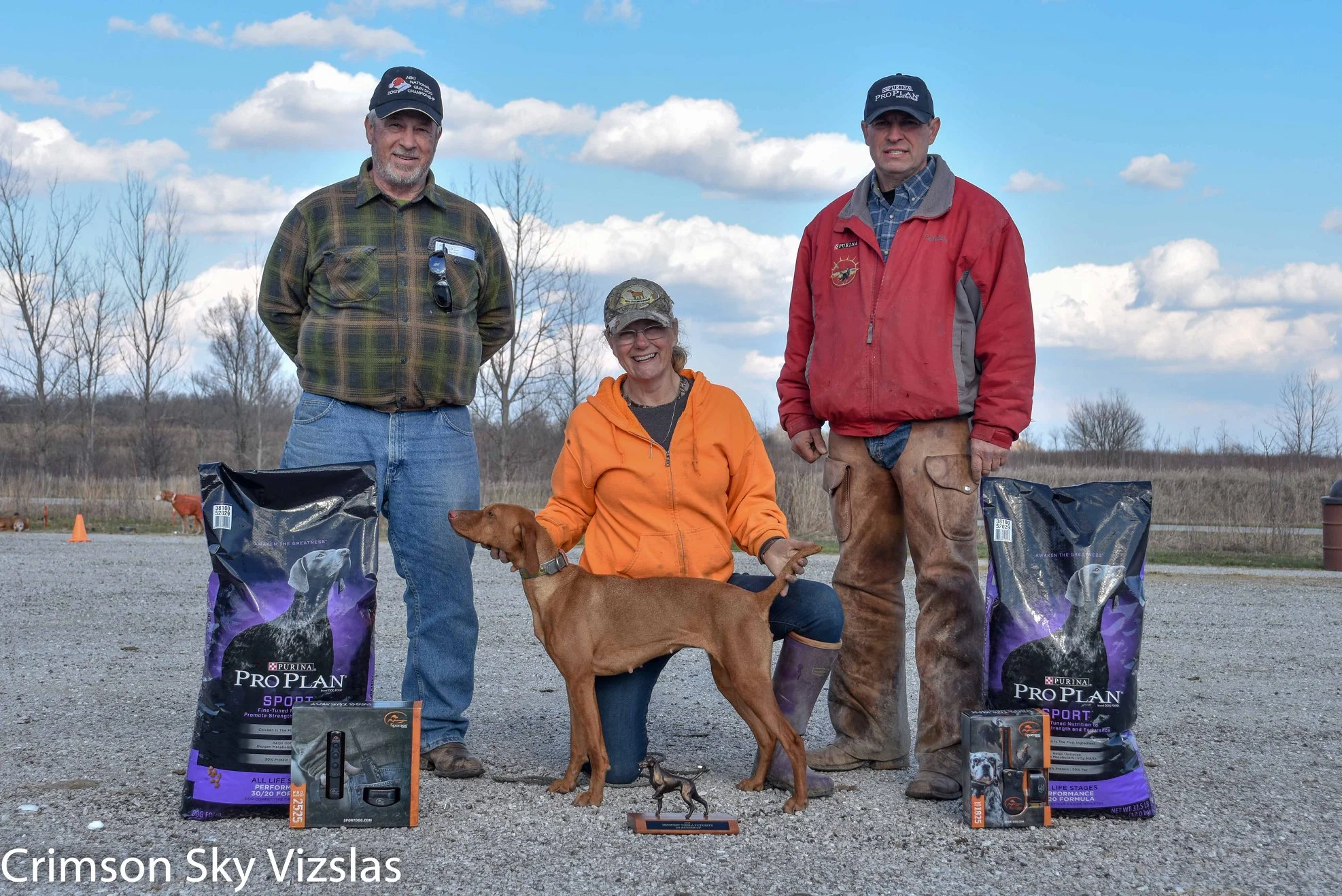 We are very fortunate to have sponsors helping to make our event a success. Thank you to Purina and Sportdog for continuing to support our event. Purina provided 12 Bags of food and some of the judge’s gifts. Sportdog provided 2 e-collars. A nice cash purse was awarded as well as the coveted Double Danny Quest trophy. The Breeder plaque also was awarded this year.